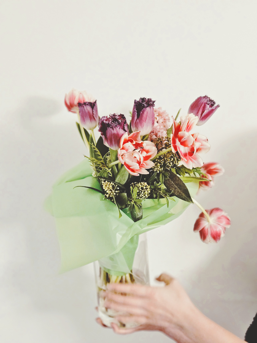 Spring flowers: Hyacinths and tulips.