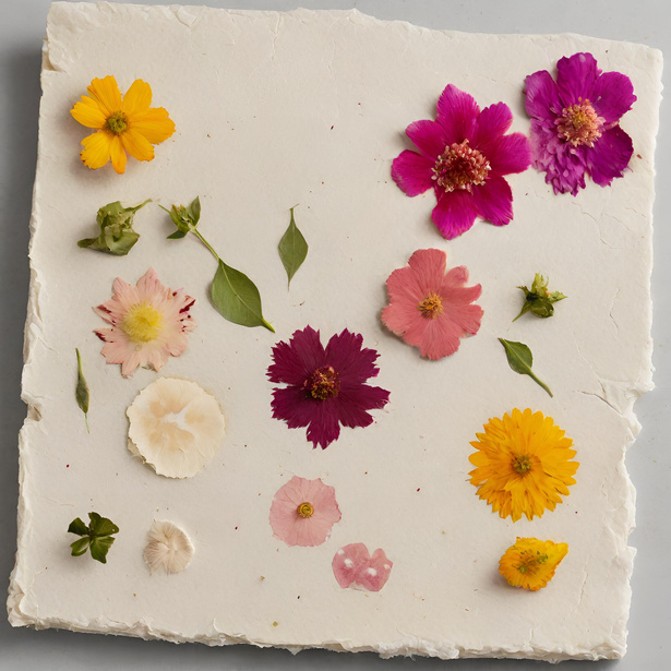 Hand mad papers, fresh and dry flowers